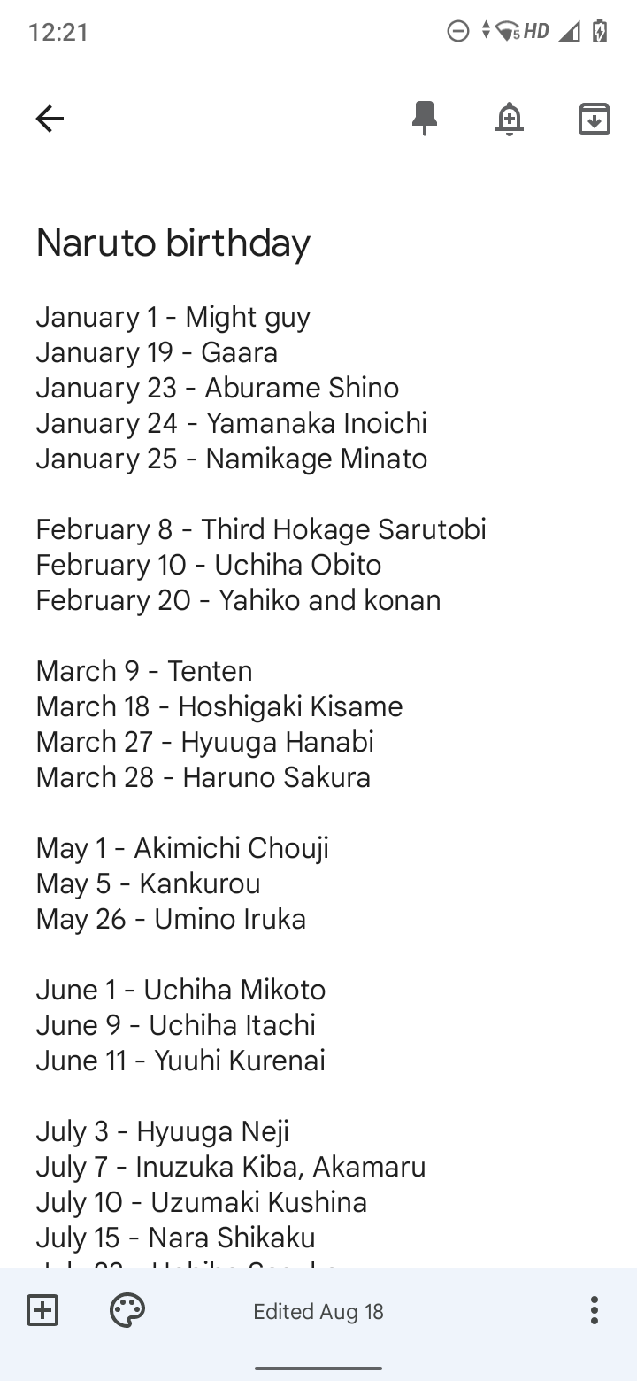 Do you share a birthday with any of these characters Check below for a list of a. Web For those fans who like to send Birthday greetings to their favourite NarutoNaruto Shippuden characters heres a list to help you _ January 01 - Maito Gai 02 - Tatami.